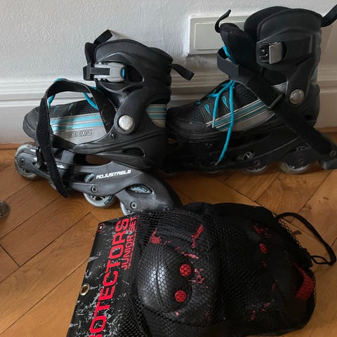 Rulleskøjter, str. 38, Håndleds-, albue- og knæbeskyttere medfølger.