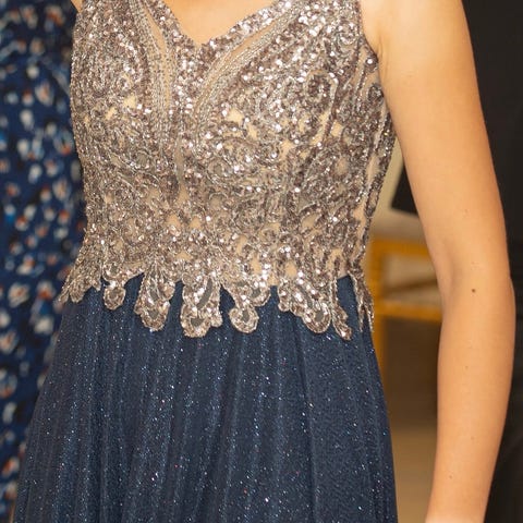 Gallakjole, .., str. L, Beige/ blå, Ubrugt, Meget flot fest/ galla kjole. Købte den for omkring 3000 kr og er aldrig brugt. Sælger den billigt da kjolen bliver ved med at tabe de små "sten" som er på den. Jeg har samlet så mange jeg kunne i en pose. Det kræver at man kan lime dem på igen. Kjolen er en del krøllet da jeg har gemt den i en pose. Kan ikke hænge den, da man taber flere af " stenene". Den er ca. 90 cm i taljen. Den vil passe en på ca. Str. L/XL