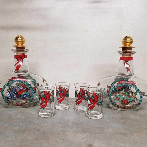 Holmegaard juleflaske julepynt, Holmegaard snapseflaske / karaffel alle med korkprop
