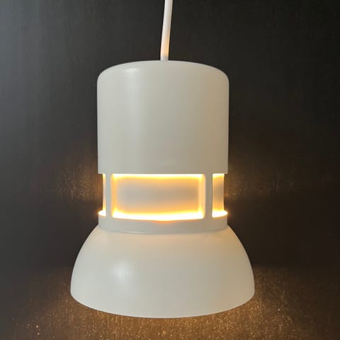 Pendel, Lyskær?, 1 stk retro pendel i sort metal og plexiglas top og bund.Prismer i siderne. Ø 35 cm Fin stand og ny ledning.