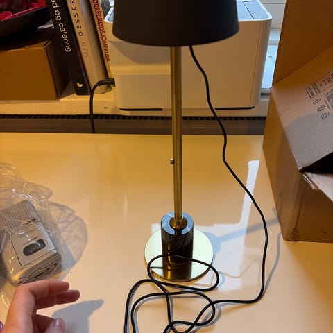 Lampe, Dyrberg Larsen valencia, Helt ny bordlampe i mat hvid med messing fod