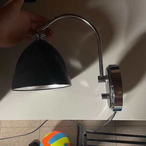 Væglampe, Belid, Stilren buet væglampe i metal fra svenske Belid. Brugt, men virker upåklageligt,