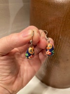 Øreringe, Fine små øreringe i træ formet som Babushkaer i klare farver. Perfekt stand. Fra røgfrit hjem.