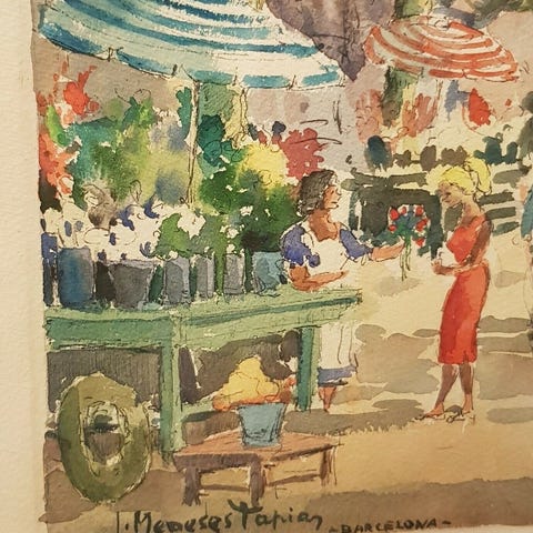 Akvarel, Clara Montalba , motiv: Andet, stil: Naturalistisk, b: 18 h: 28, Watercolor by Clara Montalba.