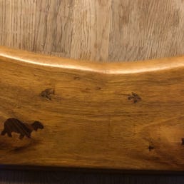 Træ/ træfiner , 100 år gl., Oversat fra fransk betyder "marqueterie" "mosaik". Essensen af ??teknikken består i at samle tynde plader (træfiner) fra elitetræer og lime dem på en base, som er flerlags krydsfiner eller et dekoreret produkt: møbler, dekoration eller indretning.