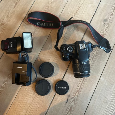 Canon, EOS Rebel XTi, spejlrefleks, 55-200 x optisk zoom, God, Model svarer til EOS 300D. Med oplader og 4Gb kort. Virker upåklædeligt.