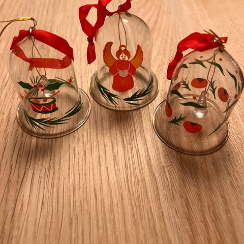 Antik tysk glas julepynt - klokke per 1stk.120 kr.