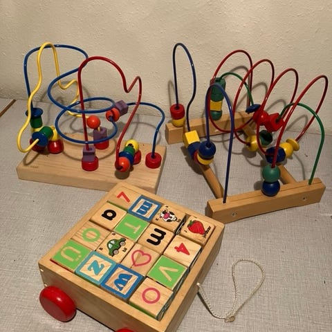 2 skt aktivitetsbiler i stof, IQ Baby, andet babylegetøj