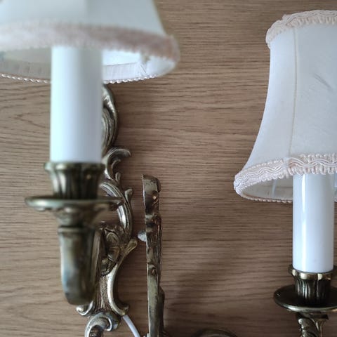 Væglampe, 2 stk. Messing væglamper med 2 nye blå skærme.