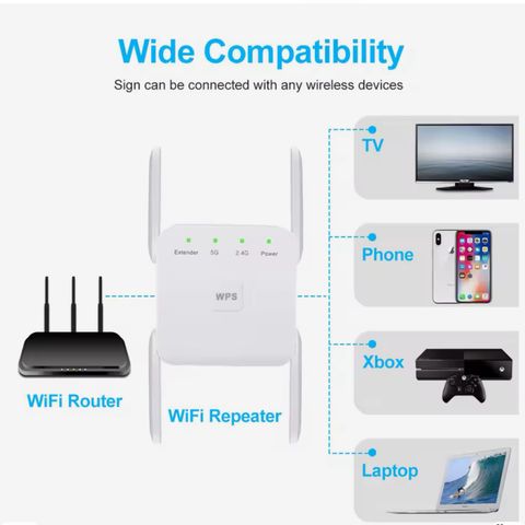 Repeater, wireless, Ukendt, Perfekt, Wireless Dualband WiFi extender 2.4G/5G til stikkontakt i perfekt stand. Udvider rækkevidden af dit lokale netværk. Kan bringes i storkøbenhavn / Nordsjælland ved lejlighed for 100 kr. ekstra. Svarer kun på telefon eller SMS: 2142 3036. Svarer aldrig på mail