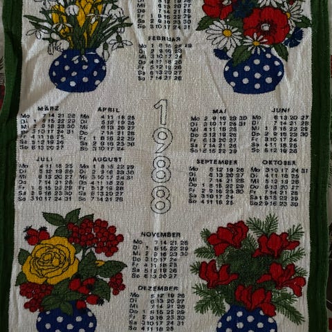Gammelt håndbroderet “pyntehåndklæde” beregnet til - i gamle dage - at skjule håndklæder og viskestykker - stoffet hang omkring en rundstok. Materialet er hør, broderet med motiv fra nissernes køkken. Måler 130 x 55 cm. Der er også broderet et monogram, og tungekanter forneden. Fantastisk håndarbejde. Helt intakt, rent og pænt.