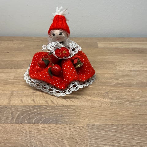 Nissepige der gynger til ophæng, Sød nissepige der sidder og gynger, til ophæng.