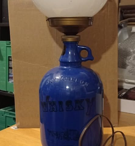 Anden bordlampe, antik whiskydunk fra 1890erne, 30 cm høj.