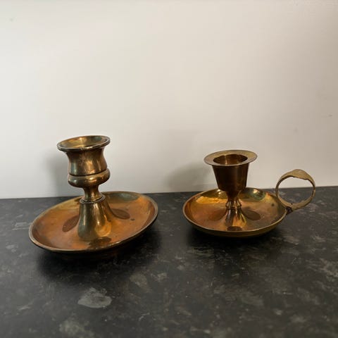 Tunge, rustikke og med forskellig højde og formentlig håndstøbte.