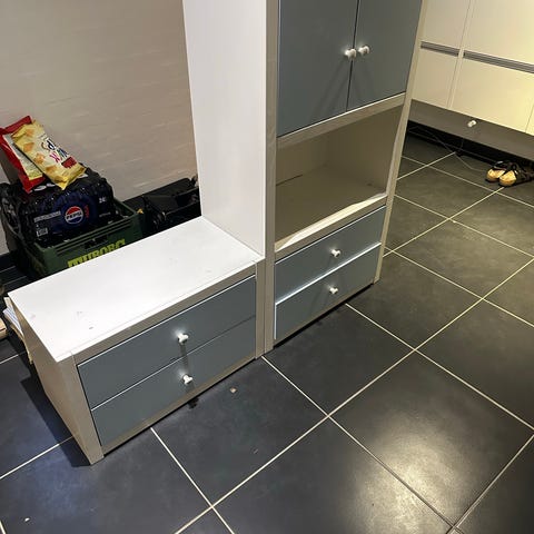 Kasser m.m. i reolen følger IKKE med.
