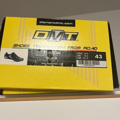 Cykelsko, DMT Ultimax, Cykelsko med carbonsål. Størrelse 45/ 27,5 cm i længde på inderSålen. En ældre model med brugsspor og patina. Men fungere fint og har kun været brugt indendørs de sidste mange år.
