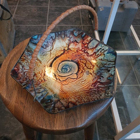 Bambusfad med mosaik, Hrlena, Flot bambus fad ned mosaik i forskellige højder i røde nuancer