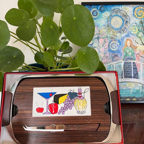 Ostebrædt, Ukendt, Tapas / Ostebrædt eller pølsebrædt, i lyst træ med drue dekoration.