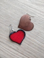 Disse håndlavede hjerteøreringe er farvet med en smuk knaldrød emalje.