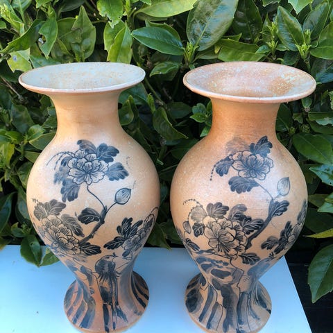 3 forskellige skønne antikke - gamle håndlavede/håndmalede vaser