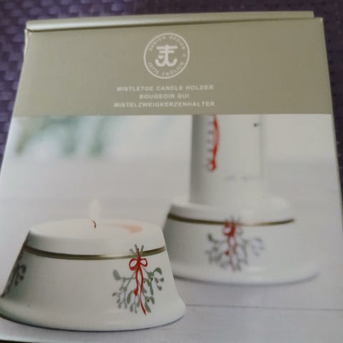 Jette Frölich porcelænsstage, Ældre lysestage med guirlander og gaver . Til bloklys.