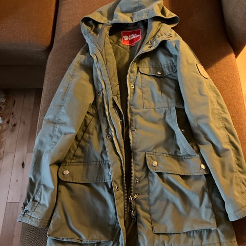 Fantastisk jakke i mørkegrøn. Uld indeni og dejlig varm. Jakken er købt i str XXS, og jeg er kommet til at vaske den på 30 grader alm vask, hvilket gjorde at den krympede lidt. Derfor sælges den som en pigejakke. Alm slid ved ærmerne, der hurtigt opstår på G1000-stof. Model: SINGI WOOL PADDED PARKA W