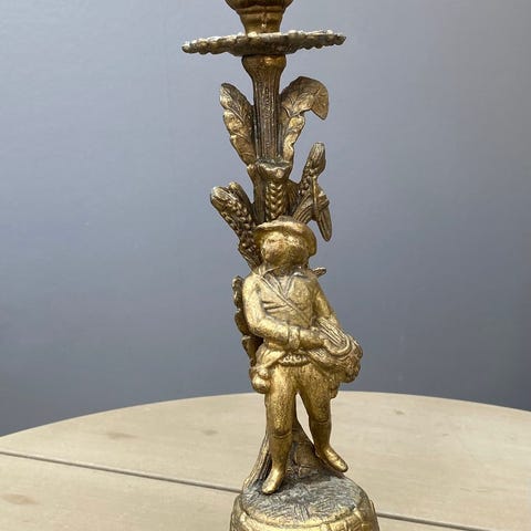 Italiensk træ lysstage, Italiensk, fin gammel retro italiensk træ lysstage , mange fine udskæringer i mange farver, mål 23 cm høj 7*7 cm i omk i bunden