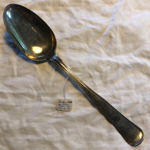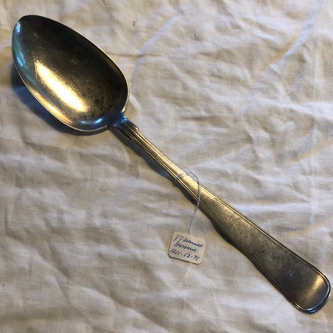 Stor antik sølvske, Sølv, 175 år gl., Cirka 175 år gammel, stor spiseske i sølv.