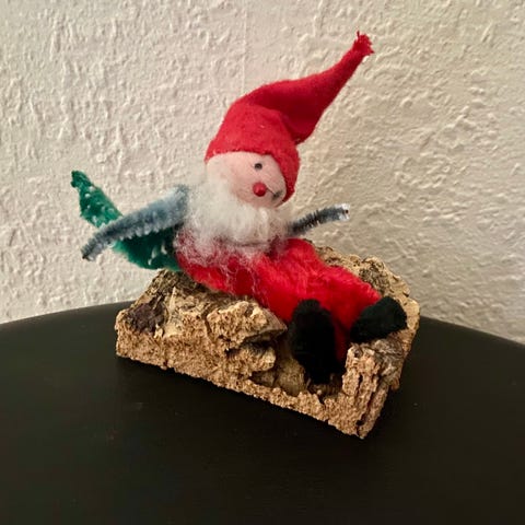 Retro nisse overkrop, Sjov retro nisse hvor der kun er øverste del. Højde ca. 30 cm. Måske der er en god idé til hvad han kan bruges til? Sender gerne men køber betaler selv for en eventuel forsendelse.