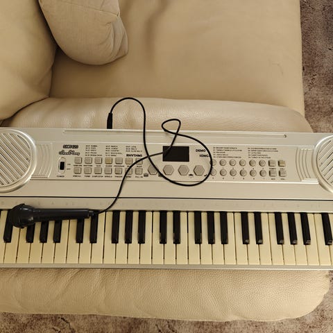 Legetøjskyeboard med demo sange og rytmer.