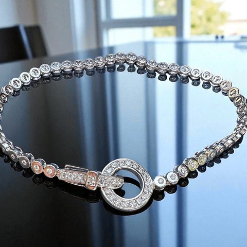 Armlænke, diamant, diamantarmlænke, Virkelig Smuk og Feminin Tennis Armlænke i 14 Karat Hvidguld m. 57 Funklende Blå Diamanter på i alt 1,50 carat. !!