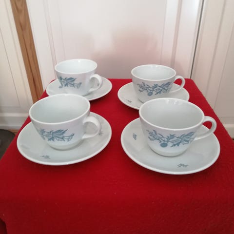 Porcelæn, 4 Kopper, Royal Copenhagen, Med blå kant.