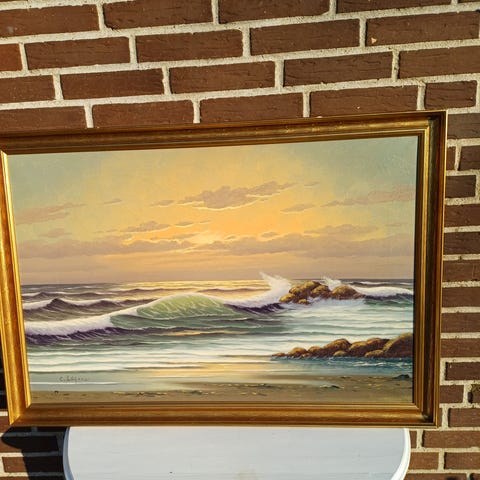 Oliemaleri, Cornelius Schipper, motiv: Landskab, stil: Realisme, b: 41 h: 30, Naturtro Vesterhavsbølger som ruller ind mod strand! Meget bevægende maleri så man næsten kan fornemme suset fra bølgetoppen. Meget velholdt, og fuldendt med guldramme. Ingen skader, lige til at hænge op et egnet sted som kan ses.