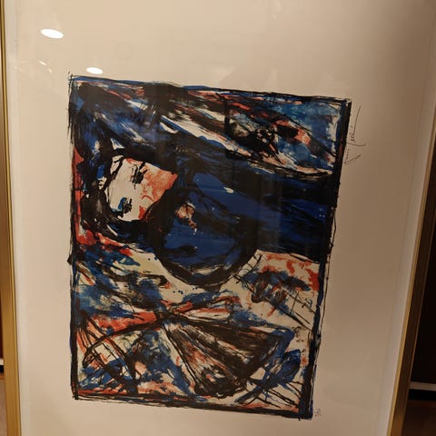 Hun maler både på olie og laver litografier.
