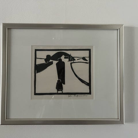 Der er lidt taperester bagpå og det har noget patina/misfarvning i kanten - det kan nemt skjules af en passepartout