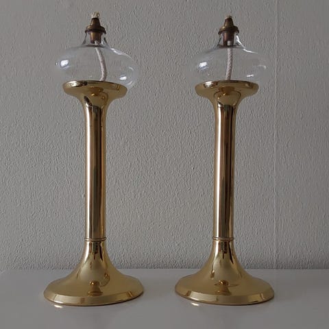 LYSESTAGER, MOSE EEG, 2 LYSESTAGER AF MOSEEG LYSHOLDEREN ER AF MESSING DER ER IKKE NOGET I VEJEN MED DEM