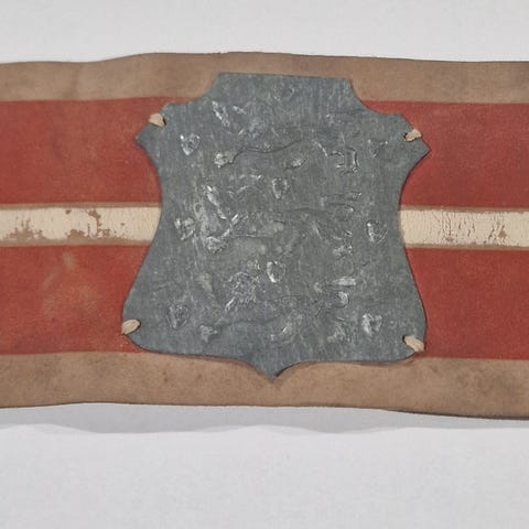 FRIHEDSKÆMPER-ARMBIND MED DET "REGLEMENTEREDE" METALSKJOLD - ULD OG BÆNDEL - FIN, FIN STAND. UBRUGT - OG PASSET PÅ…
