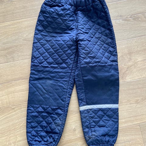Blå bukser str. 116 / str. 5 år. Tykke, forede bukser med lommer, lynlås og mulighed for at justere taljen. Nye og ubrugte. De er foret med blød fleece indvendigt.