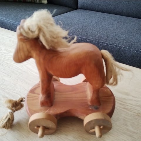 Andet legetøj, Hest på hjul, Antik, Fin. Stor legetøjs hest på hjul med hale i ægte hår. Antik...der er knækket lidt af det ene Ben