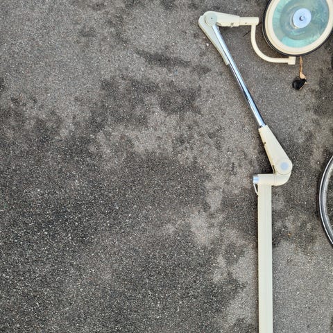 Anden arkitekt, Original Hanau Lægelampe, gulvlampe, Sælger en gammel lægelampe på hjul.