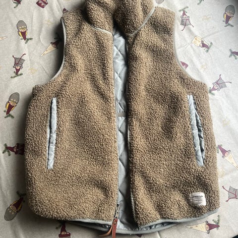 Vest, Thermovest, Mini A Ture, str. 92, Fineste Mini A Ture mellemblå/mørkeblå thermovest med fin mørkebrun fløjlskrave og ternet inderfoer.