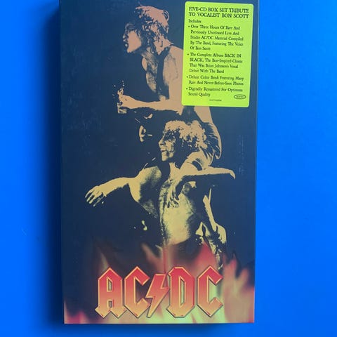 ACDC: Bonfire, rock, CD/ DVD set i super stand. Fra ryger lejleghed ( betyder at man kan lugter røg lidt især på den lille bog inde). Men ikke på selv boksen. Kan sendes
