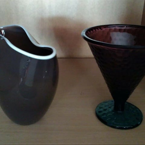 Glas, Klemmevase, Bulow, Blå sand blæst vase fra Bülow højde 14,5 cm,bredde 17 cm.