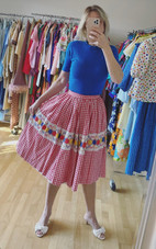 Ternet volume nederdel, str. 36, Vintage, Rød tern, Bomuld, God men brugt, Cute vintage nederdel fra 60’erne. Broderi og underskørt med blonde.
