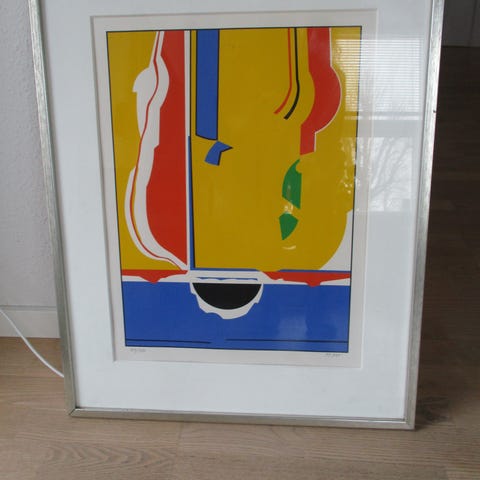 Litografi, Poul Oscar Hansen, b: 28 h: 42, Dejligt abstrakt farvelitografi, nummereret og signeret POH i bly. I god stand, bag glas, med træramme. Rammemål 41x59. Evt. forsendelse + porto.