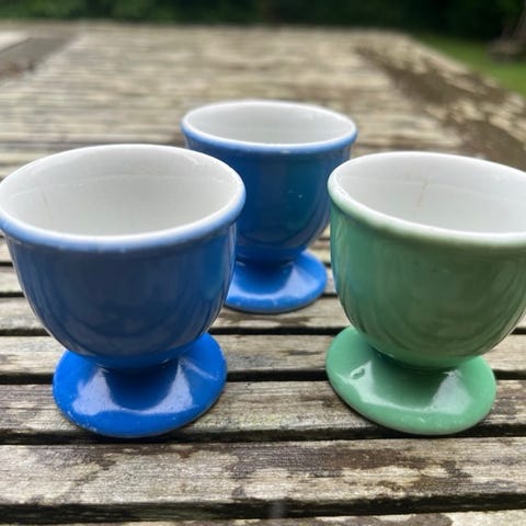 Porcelæn, Flaskebakke, Æggebæger, saltkar. , Blå blomst kantet, flettet, Flaskebakke nr 10/8216, kande 10/8025(solgt), vase 10/8214, saltkar 10/8067, Æggebæger 10/8576, sennepskop uden låg 10/8211. Priser fra kr 100 til kr 350. Kan sendes efter aftale