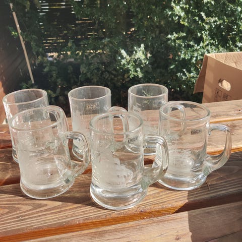 Glas, Ølkrus, 4 ølkrus med Storm P. Motiver.