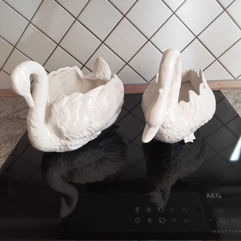 Fin porcelæns svane med perlemor shine. Rigtig fin med fx vatpinde i. Urtepotteskjuler / krukke