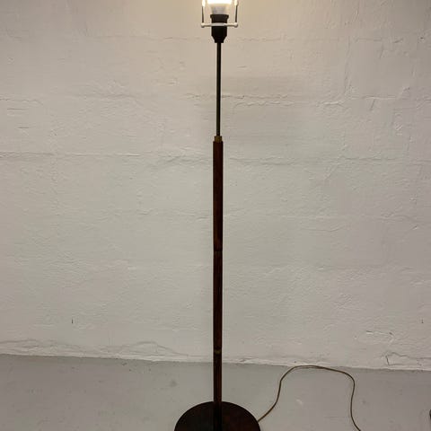 Gulvlampe, Italiensk design gulvlampe standerlampe med træ kobber og opalglas. God kvalitet og har været dyr.