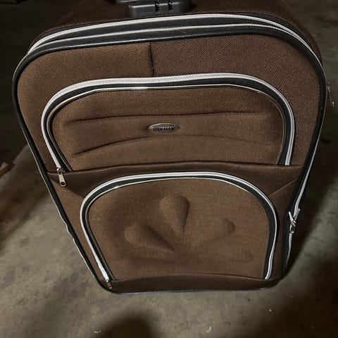 ødelagt enkelte stedet (se fotos) men med lidt gaffatape kan den måske klare flere ture fx hvor du tager hen og køber din drømmekuffert